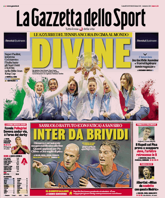 Prime pagine Prima pagina Gazzetta dello Sport: “Divine” Segui Ilovepalermocalcio su Google News Redazione Ilovepalermocalcio Settembre 22, 2025 Le azzurre del Tennis in cima al mondo Continue Reading Previous Prima pagina Tuttosport: “Toro e Cairo da nascondersi”Next Prima pagina Giornale di Sicilia: “Inzaghi prepara il turn over in Coppa”