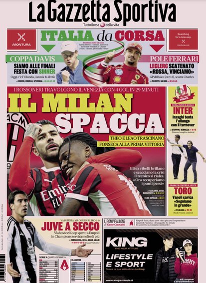 Prime pagine Prima pagina Gazzetta dello Sport: “Il Milan spacca” Segui Ilovepalermocalcio su Google News Redazione Ilovepalermocalcio Settembre 15, 2024 L’edizione odierna de “La Gazzetta dello Sport” dedica un titolo in prima pagina al Milan. Continue Reading Previous Prima pagina Corriere dello Sport: “Palermo, che colpo! Juve Stabia travolta”Next Prima pagina Tuttosport: “Tutto qui? A Empoli altro 0-0 per Motta”