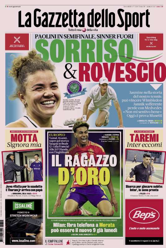 L’edizione odierna de La Gazzetta dello Sport dedica un titolo in prima pagina alla Spagna e a Yamal.
