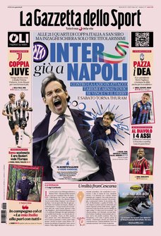 Prime pagine Prima pagina Gazzetta dello Sport: “Inter già a Napoli” Segui Ilovepalermocalcio su Google News Redazione Ilovepalermocalcio Febbraio 25, 2025 L’edizione odierna de La Gazzetta dello Sport dedica un titolo in prima pagina all’Inter. Continue Reading Previous Prima pagina Corriere dello Sport: “Pohjanpalo: «Palermo, possiamo fare di piu»””Next Prima pagina Tuttosport: “Vlahovic, no a Mou e a Giuntoli”