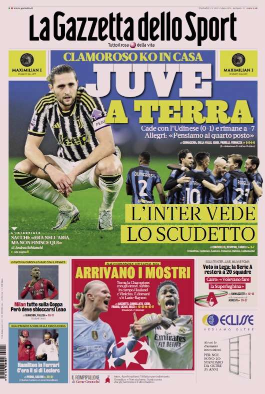 Prime pagine Prima pagina Gazzetta dello Sport: “Juve a terra” Segui Ilovepalermocalcio su Google News Redazione Ilovepalermocalcio Febbraio 13, 2024 L’edizione odierna de “La Gazzetta dello Sport” dedica la prima pagina alla Juventus. Continue Reading Previous Prima pagina Corriere dello Sport: “Via libera”Next Prima pagina Tuttosport: “Brava Juve, così uccidi il campionato”