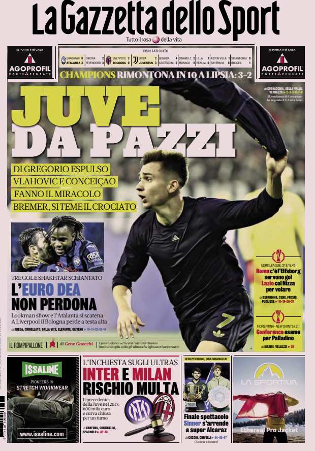 L’edizione odierna de La Gazzetta dello Sport dedica un titolo in prima pagina alla Juve.