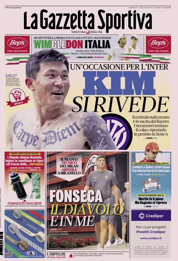 Prime pagine Prima pagina Gazzetta dello Sport: “Kim si rivede” Segui Ilovepalermocalcio su Google News Redazione Ilovepalermocalcio Luglio 7, 2024 L’edizione odierna de La Gazzetta dello Sport dedica un titolo in prima pagina all’Inter. Continue Reading Previous Prima pagina Corriere dello Sport: “Palermo, assalto a Pedro Mendes”Next Prima pagina Tuttosport: “Juve, Toh: Tobido”