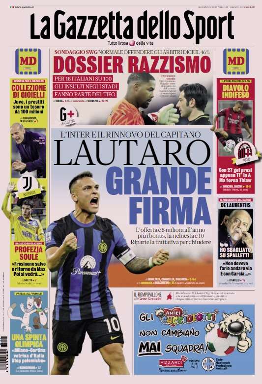 Prime pagine Prima pagina Gazzetta dello Sport: “Lautaro grande firma” Segui Ilovepalermocalcio su Google News Redazione Ilovepalermocalcio Febbraio 8, 2024 L’edizione odierna de “La Gazzetta dello Sport” dedica la prima pagina a Lautaro. Continue Reading Previous Prima pagina Corriere dello Sport: “Ci prova lui”Next Prima pagina Tuttosport: “Da Felipe a Hermoso. Parametri Giuntoli”