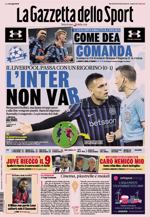 Prime pagine Prima pagina Gazzetta dello Sport: “L’Inter non Var” Segui Ilovepalermocalcio su Google News Redazione Ilovepalermocalcio Dicembre 10, 2025 Sconfitta per Chivu Continue Reading Previous Prima pagina Corriere dello Sport: “Lucio: «Juve, ho fatto danni»”Next Prima pagina Tuttosport: “Juve, mica avrai paura dal Pafos”
