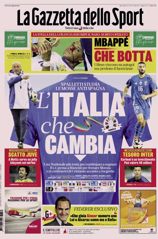 Prime pagine Prima pagina Gazzetta dello Sport: “l’Italia che cambia” Segui Ilovepalermocalcio su Google News Redazione Ilovepalermocalcio Giugno 18, 2024 L’edizione odierna de “La Gazzetta dello Sport” dedica la prima pagina all’Italia. Continue Reading Previous Prima pagina Corriere dello Sport: “Il Palermo insiste, Mazzitelli e Quagliata”Next Prima pagina Tuttosport: “Brivido Yildiz”