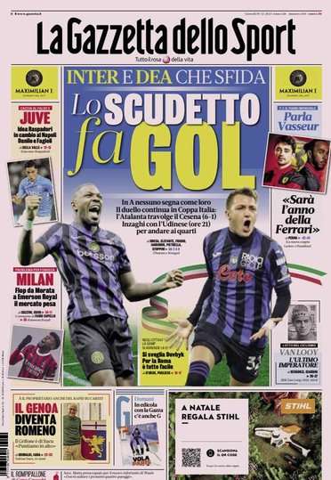 L’edizione odierna de La Gazzetta dello Sport dedica un titolo in prima pagina sulla sfida tra Inter e Atalanta.