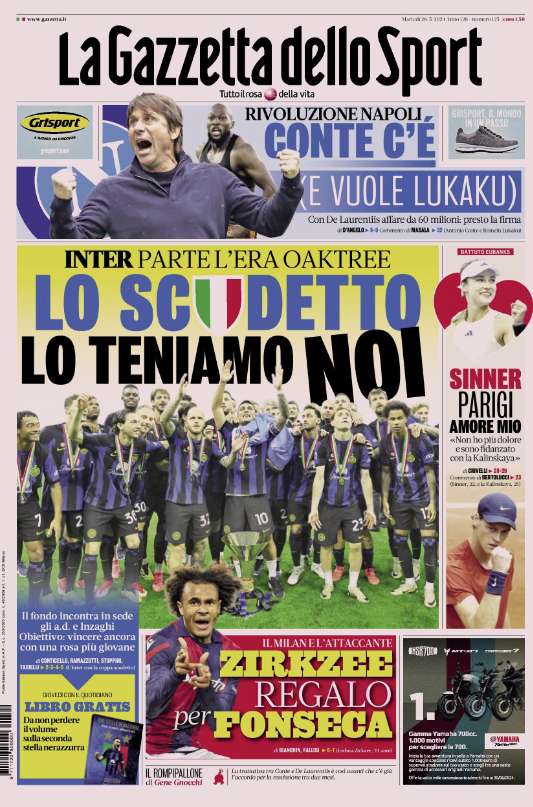 L’edizione odierna de “La Gazzetta dello Sport” dedica la prima pagina all’Inter.