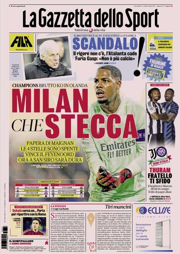 Prime pagine Prima pagina Gazzetta dello Sport: “Milan, che stecca” Segui Ilovepalermocalcio su Google News Redazione Ilovepalermocalcio Febbraio 13, 2025 L’edizione odierna de La Gazzetta dello Sport dedica un titolo in prima pagina al Milan. Continue Reading Previous Prima pagina Tuttosport: “Così non e calcio”Next Prima pagina Giornale di Sicilia: “Reddito di povertà, si parte”
