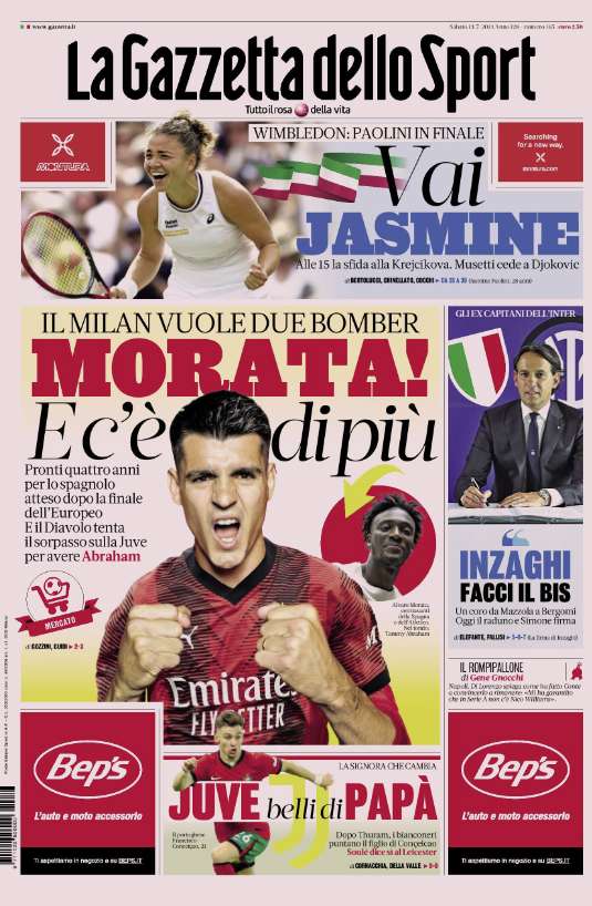 Prime pagine Prima pagina Gazzetta dello Sport: “Morata! E c’è di più” Segui Ilovepalermocalcio su Google News Redazione Ilovepalermocalcio Luglio 13, 2024 L’edizione odierna de La Gazzetta dello Sport dedica un titolo in prima pagina al mercato del Milan. Continue Reading Previous Prima pagina Corriere dello Sport: “Palermo, Ceccherini con Henry”Next Prima pagina Tuttosport: “Stancho, avanti Juve”