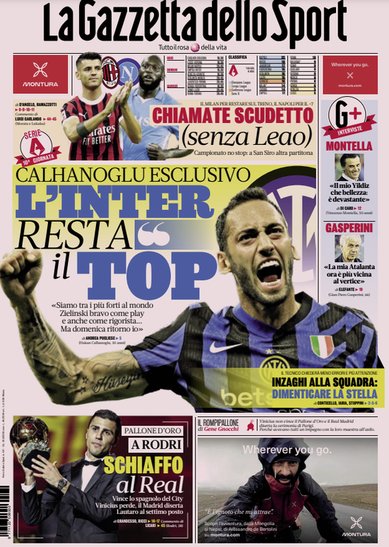 L’edizione odierna de La Gazzetta dello Sport dedica un titolo in prima pagina a Rodri che ha vinto il Pallone d’oro.