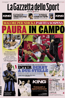 L’edizione odierna de “La Gazzetta dello Sport” dedica il titolo principale in prima pagina al malore di Ndicka in Udinese-Roma.