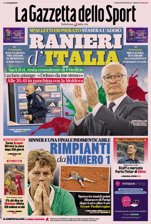 Prime pagine Prima pagina Gazzetta dello Sport: “Ranieri d’Italia” Segui Ilovepalermocalcio su Google News Redazione Ilovepalermocalcio Giugno 9, 2025 Luciano piange: «Deluso da me stesso» Continue Reading Previous Prima pagina Tuttosport: “Allo sbando”Next Prima pagina Giornale di Sicilia: “Italia, Spalletti esonerato «Sono deluso da me stesso»”