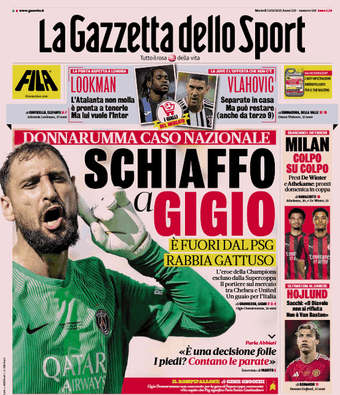 Prime pagine Prima pagina Gazzetta dello Sport: “Schiaffo a Gigio” Segui Ilovepalermocalcio su Google News Redazione Ilovepalermocalcio Agosto 12, 2025 L’eroe della Champions escluso dalla Supercoppa Continue Reading Previous Prima pagina Tuttosport: “Haaland, gli Oasis Falcone e Borsellino Palermo, che notte!”Next Prima pagina Tuttosport: “Alcaraz n.1? Deve battere sé stesso”