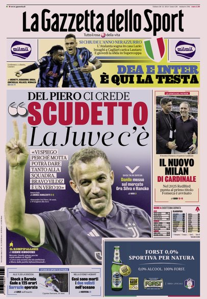 Prime pagine Prima pagina Gazzetta dello Sport: “Scudetto, la Juve c’è'” Segui Ilovepalermocalcio su Google News Redazione Ilovepalermocalcio Dicembre 28, 2024 L’edizione odierna de La Gazzetta dello Sport dedica un titolo in prima pagina alla Juventus. Continue Reading Previous Prima pagina Giornale di Sicilia: “Piano battaglia, stagione al via”Next Prima pagina Tuttosport: “Juve, per Hancko chiave Mbangula”