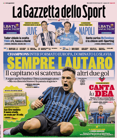 Prime pagine Prima pagina Gazzetta dello Sport: “Sempre Lautaro” Segui Ilovepalermocalcio su Google News Redazione Ilovepalermocalcio Ottobre 1, 2025 Il capitano si scatena altri due gol Continue Reading Previous Prima pagina Repubblica Palermo: “Il Comune si muove in ritardo slitta l’assunzione dei vigili”Next Prima pagina Tuttosport: “«Juve, vinci e svolti»”
