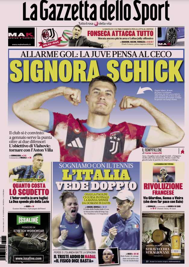Prime pagine Prima pagina Gazzetta dello Sport: “Signora shock” Segui Ilovepalermocalcio su Google News Redazione Ilovepalermocalcio Novembre 20, 2024 L’edizione odierna de La Gazzetta dello Sport dedica un titolo in prima pagina alla Juventus. Continue Reading Previous Prima pagina Corriere dello Sport: “Dionisi aspetta il vero Ranocchia”Next Prima pagina Tuttosport: “Weah nel nome di papà”