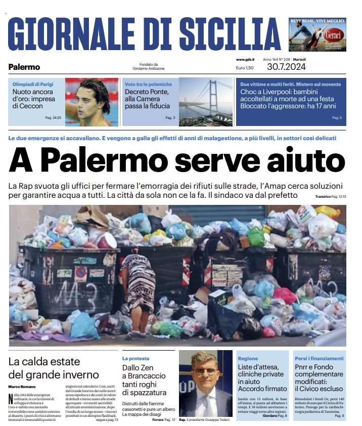 Archivio Articoli Prime pagine Prima pagina Giornale di Sicilia: “A Palermo serve aiuto” Segui Ilovepalermocalcio su Google News Redazione Ilovepalermocalcio Luglio 30, 2024 L’edizione odierna de Il Giornale di Sicilia dedica un titolo in prima pagina all’emergenza rifiuti a Palermo. Continue Reading Previous Prima pagina Tuttosport: “Nicoloro”Next Prima pagina Corriere dello Sport: “Brunor: «Palermo, resto qui»””