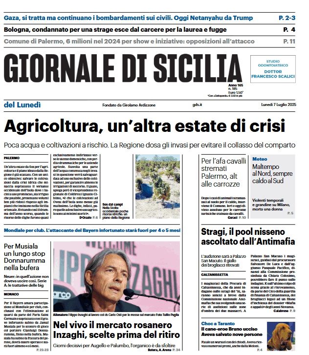 Prima pagina Giornale di Sicilia: “Agricoltura, un’altra estate di crisi”