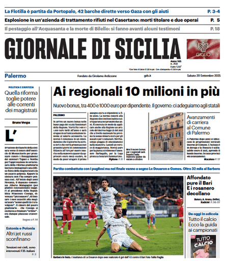 Prima pagina Giornale di Sicilia: “Ai regionali 10 milioni in più”