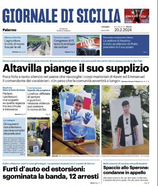 Prima pagina Giornale di Sicilia: “Altavilla piange il suo supplizio”