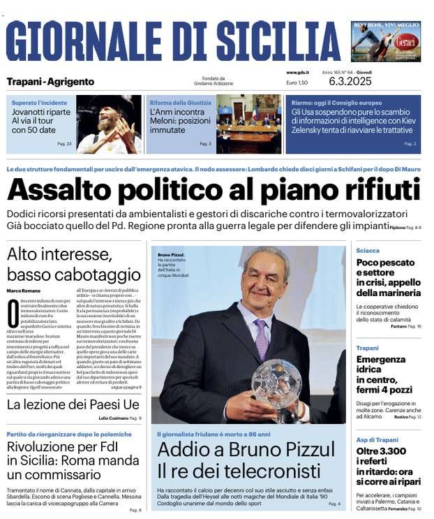 Prima pagina Giornale di Sicilia: “Assalto politico ai rifiuti”
