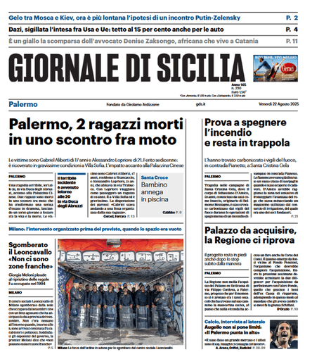 Prima pagina Giornale di Sicilia: “Augello non si pone limiti: «Il Palermo punta in alto»”