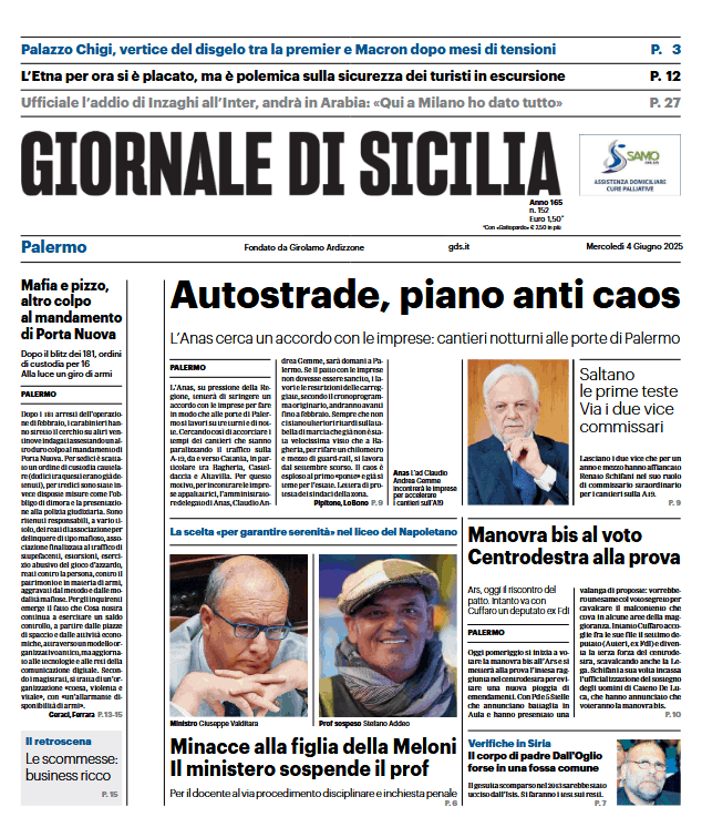 Prima pagina Giornale di Sicilia: “Autostrade, piano anti caos”