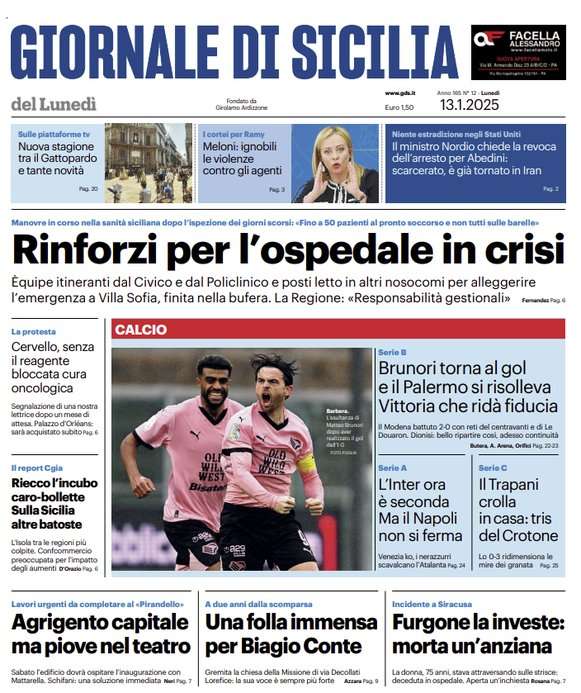 L’edizione odierna de Il Giornale di Sicilia dedica un titolo in prima pagina al Palermo e alla vittoria contro il Modena.