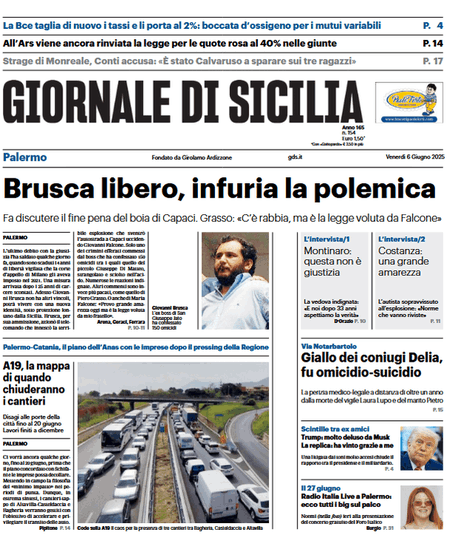 Prima pagina Giornale di Sicilia: “Brusca libero, infuria la polemica”