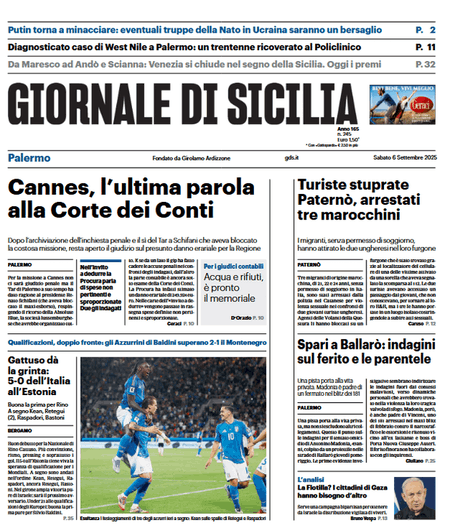 Prime pagine Prima pagina Giornale di Sicilia: “Cannes, l’ultima parola alla Corte dei Conti” Segui Ilovepalermocalcio su Google News Redazione Ilovepalermocalcio Settembre 6, 2025 Turiste stuprate Paternò, arrestati tre marocchini Continue Reading Previous Prima pagina Corriere dello Sport: “Goleada”Next Prima pagina Gazzetta dello Sport: “C’è tutta l’Italia”