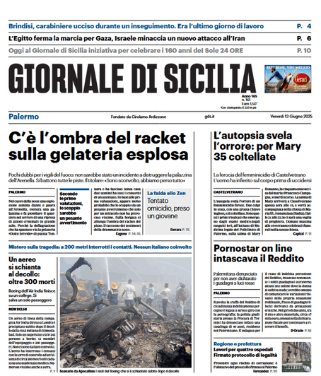 Prima pagina Giornale di Sicilia: “C’è l’ombra del racket sulla gelateria esplosa”