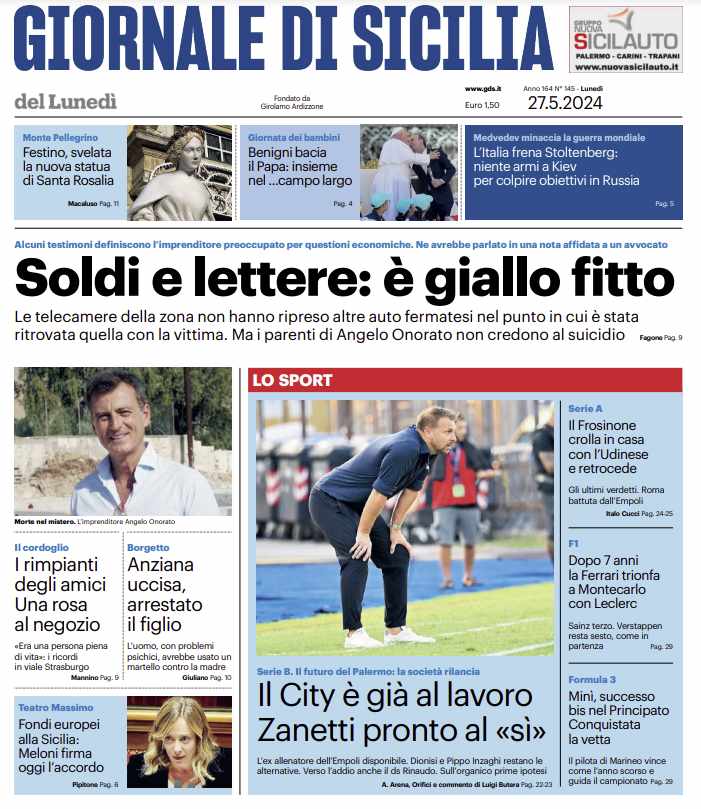 Prima pagina Giornale di Sicilia: “City già al lavoro, Zanetti pronto al si”