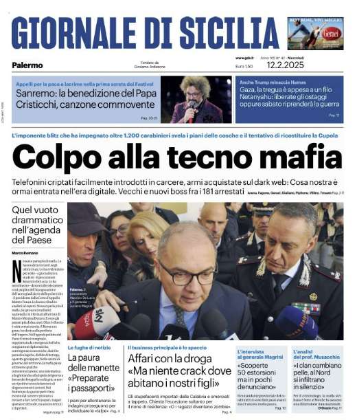 Prime pagine Prima pagina Giornale di Sicilia: “Colpo alla tecno Mafia” Segui Ilovepalermocalcio su Google News Redazione Ilovepalermocalcio Febbraio 12, 2025 L’edizione odierna de Il Giornale di Sicilia dedica un titolo in prima pagina al colpo alla mafia. Continue Reading Previous Prima pagina Repubblica Palermo: “Dopo la beffa di La Spezia processo a Dionisi”Next Prima pagina Gazzetta dello Sport: “Urlo Juve”