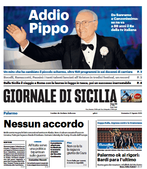 Prime pagine Prima pagina Giornale di Sicilia: “Coppa Italia, impresa contro la Cremonese” Segui Ilovepalermocalcio su Google News Redazione Ilovepalermocalcio Agosto 17, 2025 Palermo ok ai rigori Continue Reading Previous Prima pagina Corriere dello Sport: “Magico Palermo”Next Prima pagina Repubblica Palermo: “Da Militello al trono della tv la Sicilia piange Pippo Baudo”
