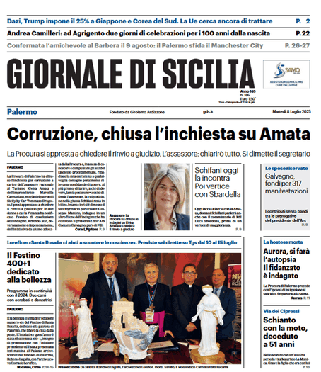 Prima pagina Giornale di Sicilia: “Corruzione, chiusa l’inchiesta su Amata”