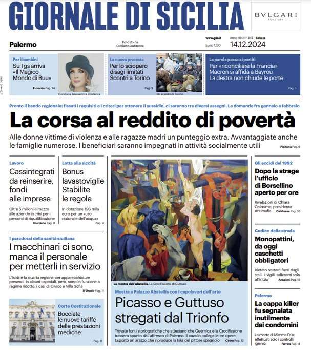 La prima pagina dell’edizione odierna de “Il Giornale di Sicilia” pone l’attenzione sul reddito di povertà e su quali sono le modalità e i punteggi per ottenerlo.
