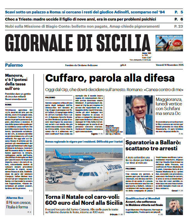 Prime pagine Prima pagina Giornale di Sicilia: “Cuffaro, parola alla difesa” Segui Ilovepalermocalcio su Google News Redazione Ilovepalermocalcio Novembre 14, 2025 Oggi dal Gip, che dovrà decidere sull’arresto. Romano: «Canea contro di me» Continue Reading Previous Prima pagina Repubblica Palermo: “Cuffaro si sfoga con i carabinieri e mette nei guai gli alleati”Next Prima pagina Gazzetta dello Sport: “Troppo poco”