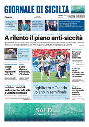 L’edizione odierna de Il Giornale di Sicilia dedica la prima pagina ad Euro 2024 con Olanda e Inghilterra che volano in semifinale.