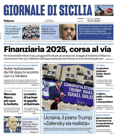 Prima pagina Giornale di Sicilia: “Finanziaria 2025, corsa al via”