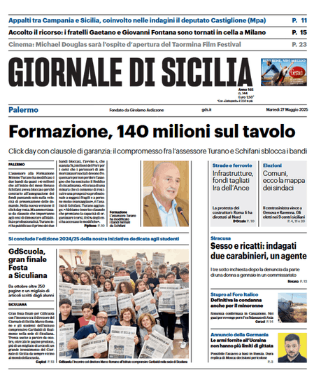 Prima pagina Giornale di Sicilia: “Formazione, 140 milioni sul tavolo”