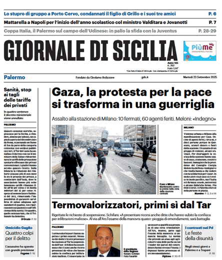 Prime pagine Prima pagina Giornale di Sicilia: “Gaza, la protesta per la pace si trasforma in una guerriglia” Segui Ilovepalermocalcio su Google News Redazione Ilovepalermocalcio Settembre 23, 2025 Termovalorizzatori, primi sì dal Tar Continue Reading Previous Prima pagina Corriere dello Sport: “Pallone d’Oro, il trionfo di Dembelé”Next Prima pagina Repubblica Palermo: “In ventimila per Gaza”