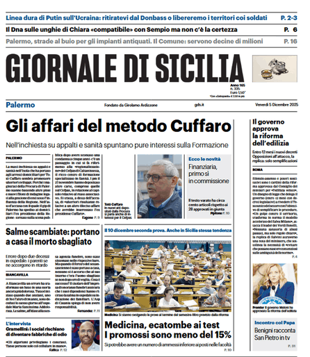 Prima pagina Giornale di Sicilia: “Gli affari del metodo Cuffaro”