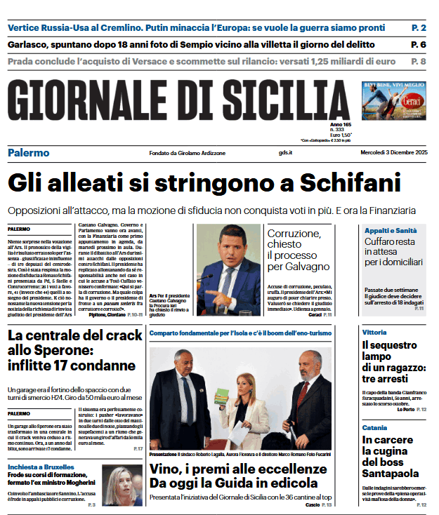 Prima pagina Giornale di Sicilia: “Gli alleati si stringono a Schifani”