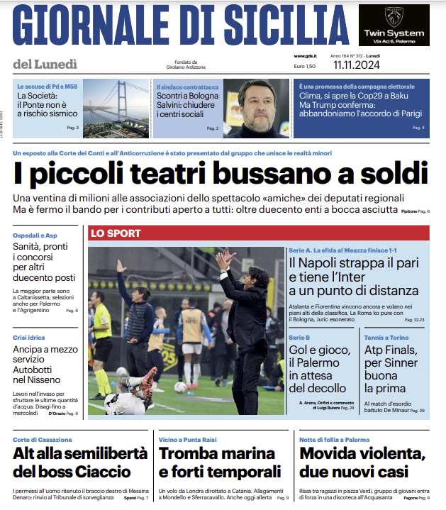 Prima pagina Giornale di Sicilia: “Gol e gioco, il Palermo in attesa del decollo”