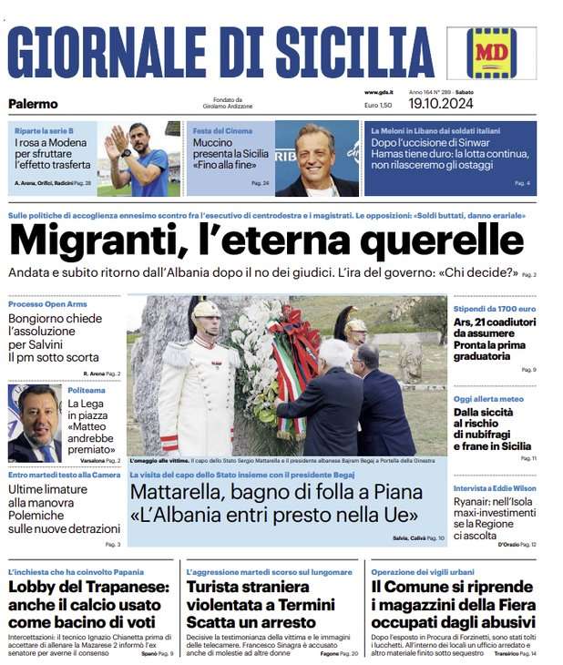L’edizione odierna de Il Giornale di Sicilia dedica un titolo in prima pagina al Palermo che oggi sarà impegnato a Modena.