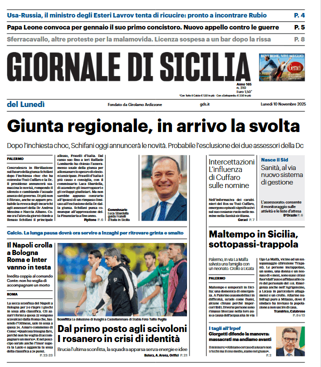 Prime pagine Prima pagina Giornale di Sicilia: “I rosanero in crisi di identità” Segui Ilovepalermocalcio su Google News Redazione Ilovepalermocalcio Novembre 10, 2025 Dal primo posto agli scivoloni Continue Reading Previous Prima pagina Gazzetta dello Sport: “Volo Bologna”Next Prima pagina Corriere dello Sport: “Fanno sul serio”