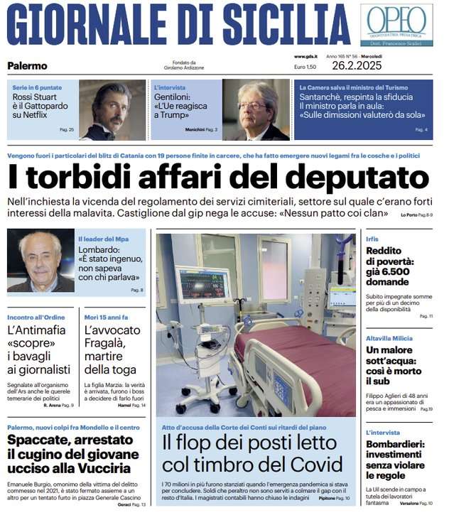 Prima pagina Giornale di Sicilia: “I torbidi affari del deputato”