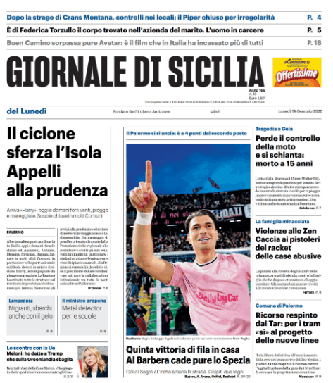 Prime pagine Prima pagina Giornale di Sicilia: “Il ciclone sferza l’isola” Segui Ilovepalermocalcio su Google News Redazione Ilovepalermocalcio Gennaio 19, 2026 Brutto tempo Continue Reading Previous Prima pagina Corriere dello Sport: “Alla Max”Next Prima pagina Tuttosport: “Mateta col Napoli”