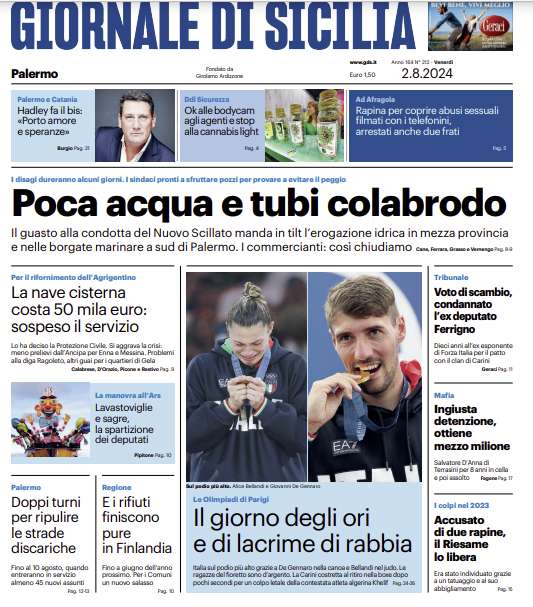 L’edizione odierna de Il Giornale di Sicilia dedica un titolo in prima pagina alle olimpiadi.